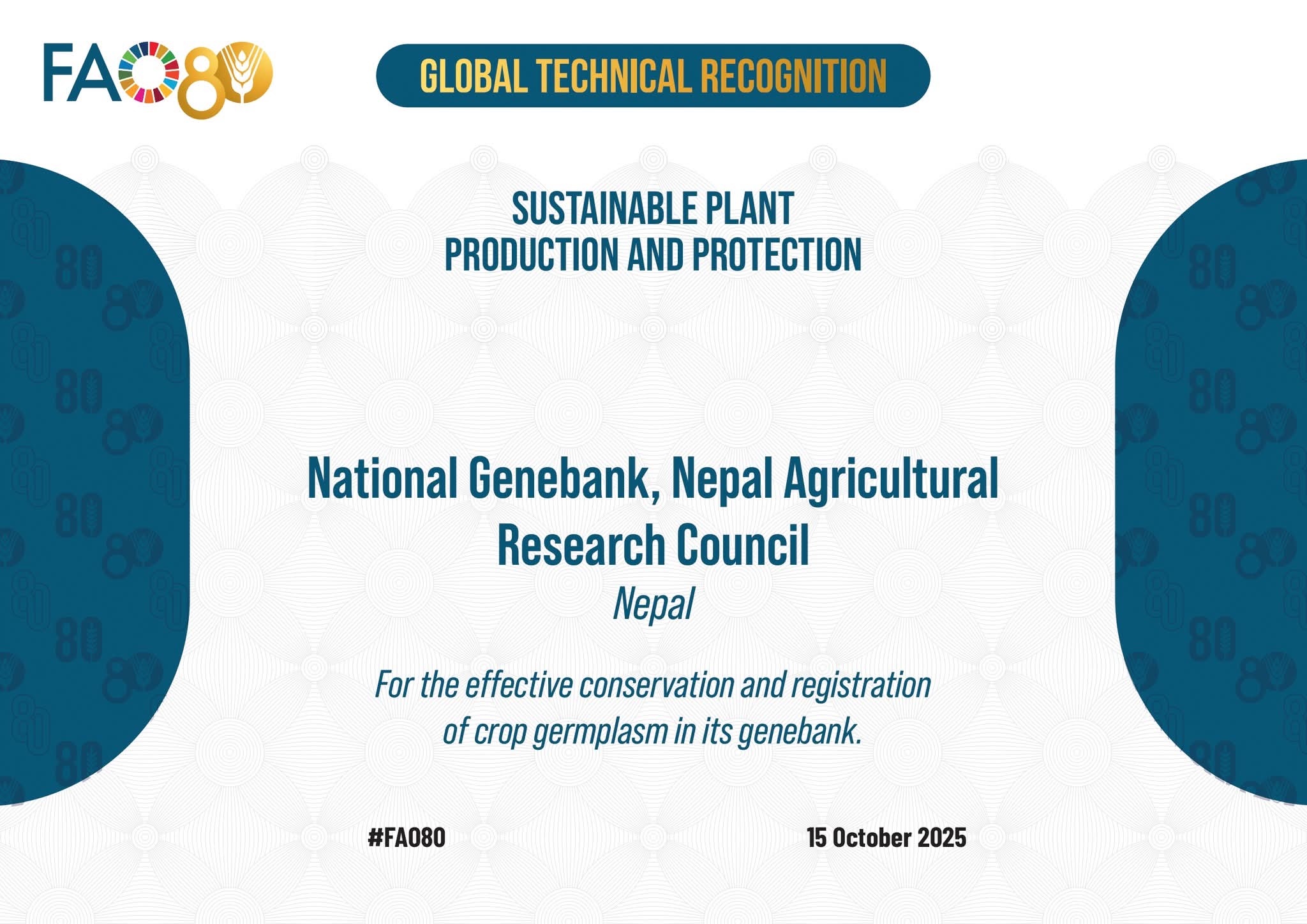 For the effective conservation and registration of crop germplasm in its genebank.